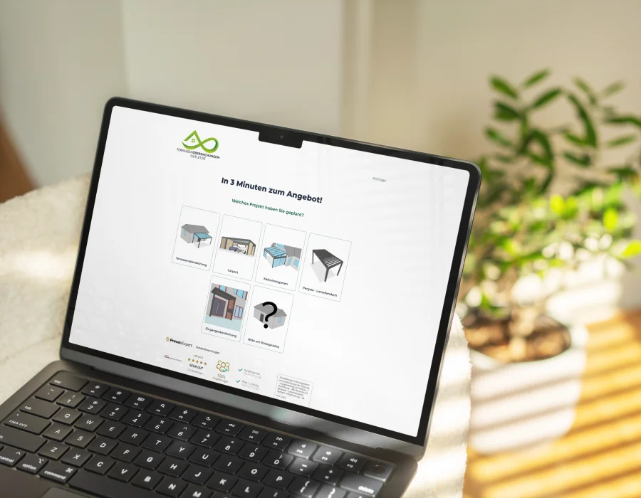 Bauhandel24, a Bavaria-based retailer and service provider for the construction industry, wanted to acquire new customers for patio roofing through online marketing. The brief: develop an interactive lead page with a product configurator – appealing, functional, and easy to adapt to changing offers.